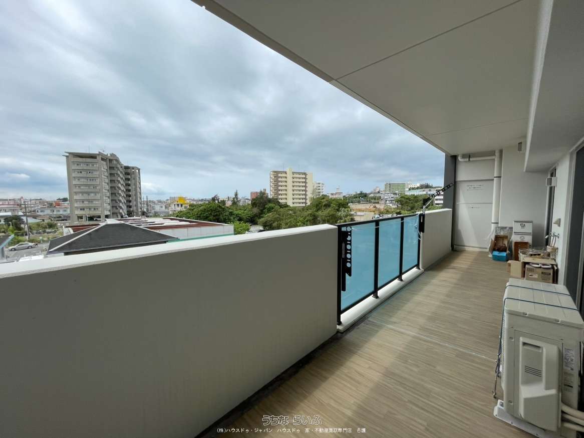 南西向きのワイドなバルコニー(18.6㎡)からは心地よい光が差し込みます。トイレには、お掃除もしやすく見た目もスッキリとした節水型タンクレストイレを採用。「利便性・新しさ・安心感」を兼ね備えた、名護の新しい住まいです。