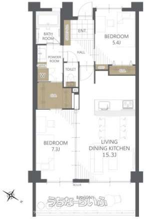 | 間取り | 2LDK ( 洋7.3 洋5.4 LDK15.3) | ||