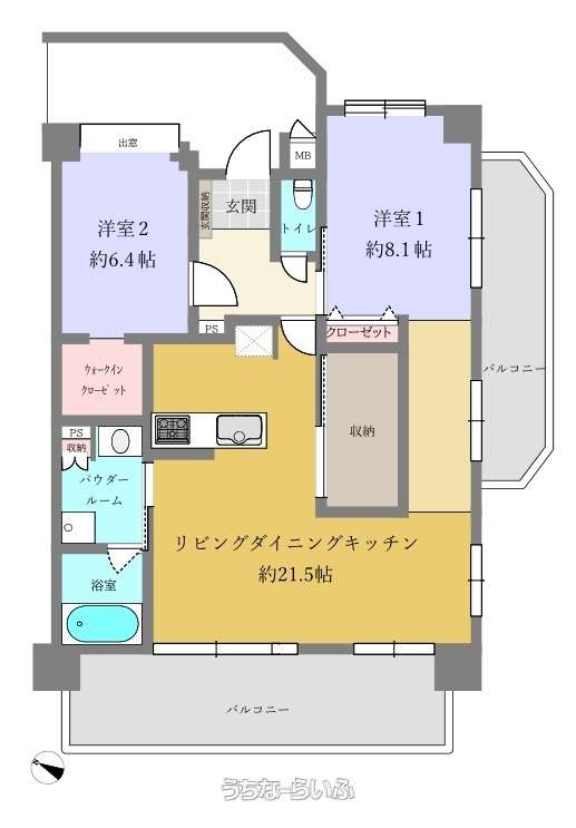 | 間取り | 2LDK ( 洋8.1 洋6.4 LDK21.5) | ||