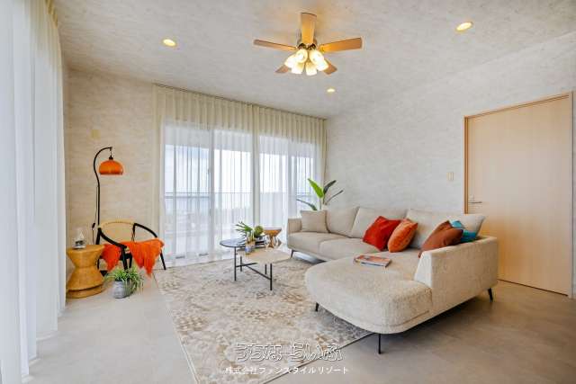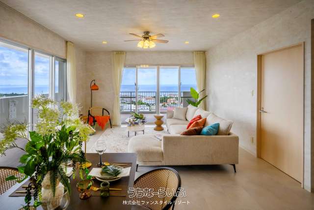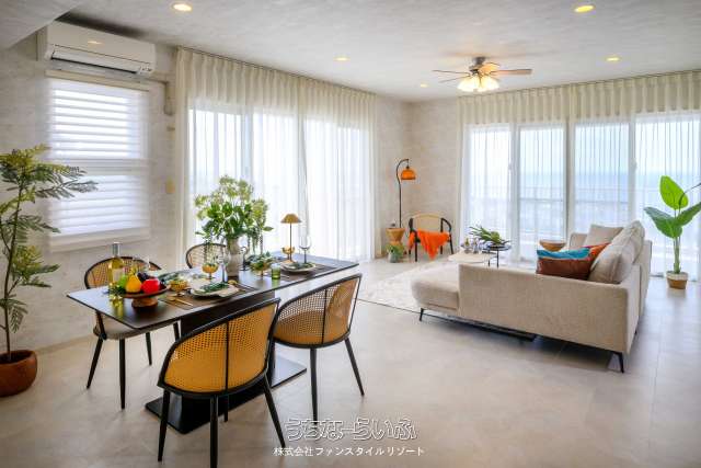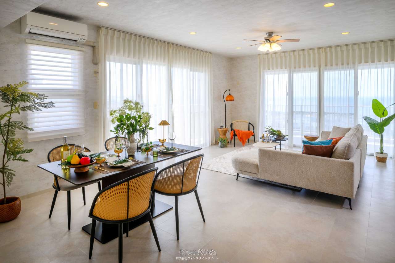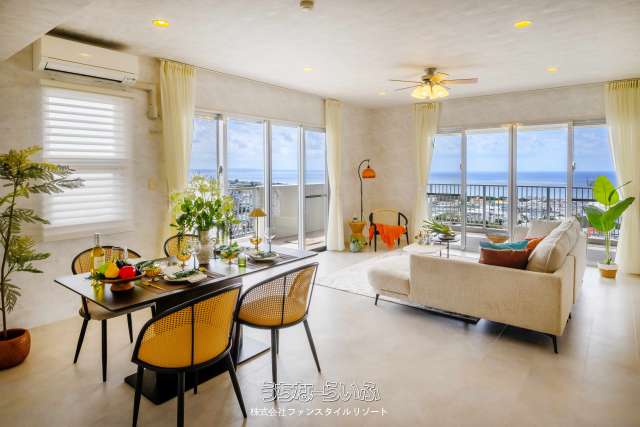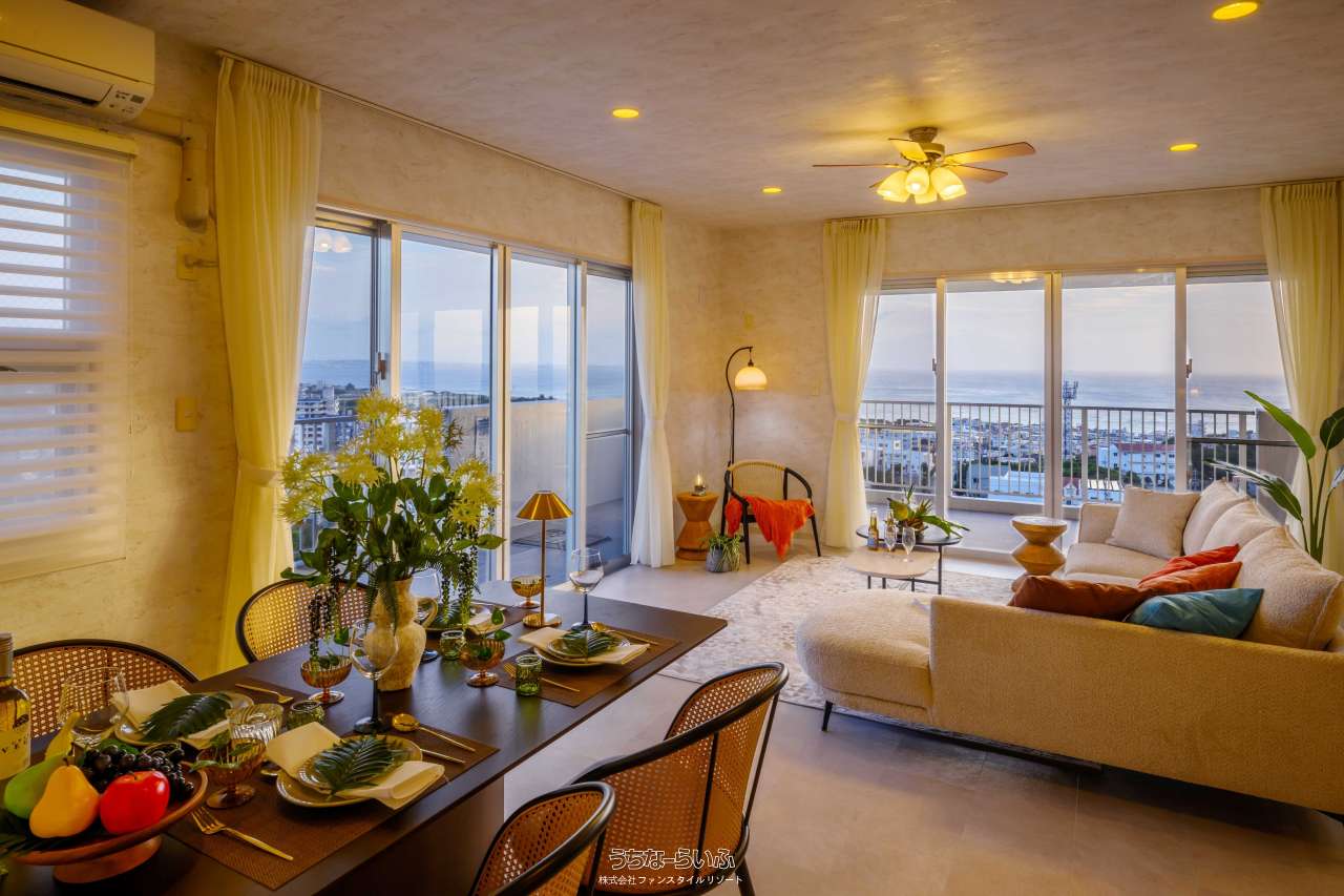 【全戸オーシャンビュー】読谷村楚辺の高台に西海岸を見渡す専有面積90m2の2LDK&L字バルコニー、1フロア2邸全戸角部屋♪モデルルームご見学予約受付中