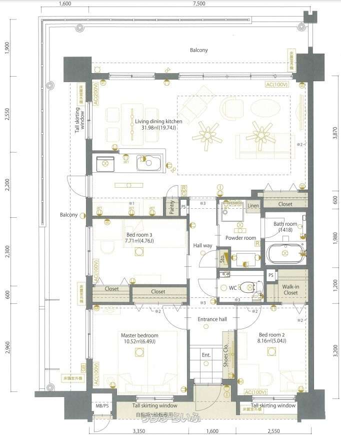 | 備考 | 表記面積は壁芯面積になります。【登記面積(内法)75.85㎡】 |