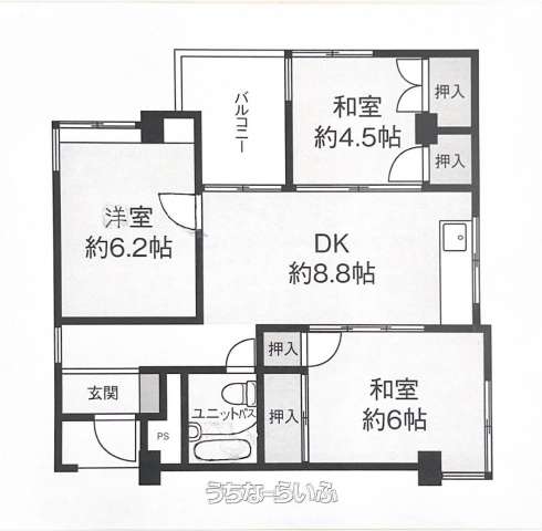 | 間取り | 3DK ( 洋6.2 和6 和4.5 DK8.8) | ||