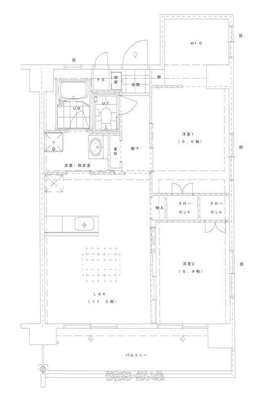 | 間取り | 2LDK ( 洋6 洋5.8 LDK11.5 ※2LDK+WIC) | ||