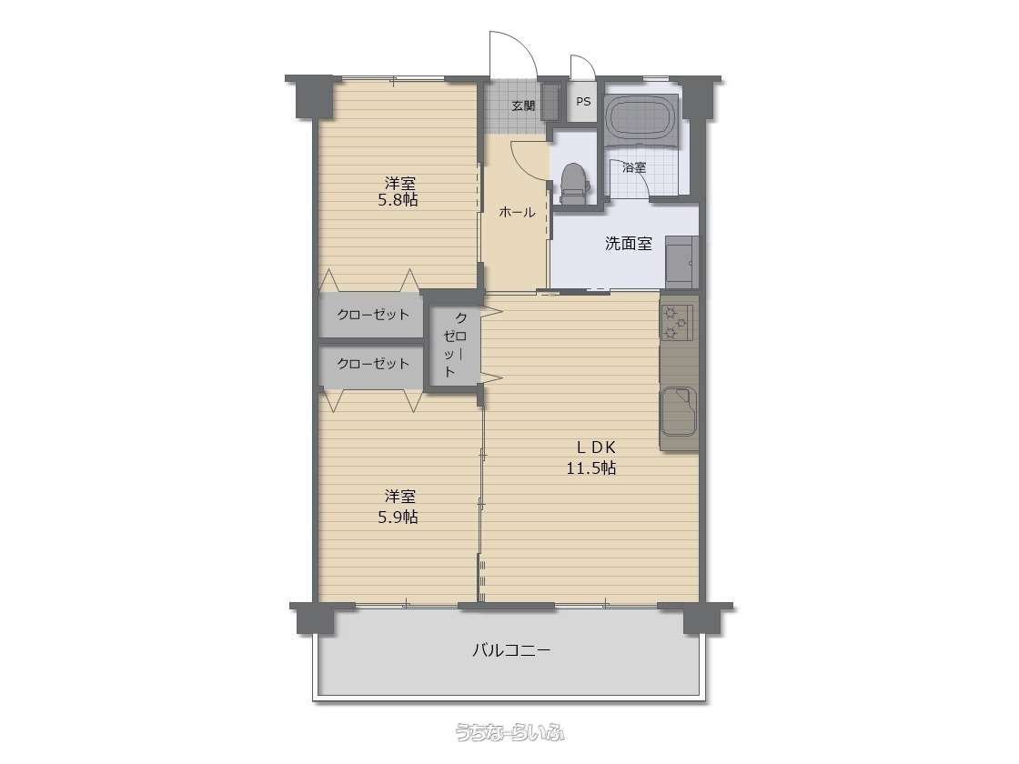 | 間取り | 2LDK ( 洋5.8 洋5.9 LDK11.5 ※2LDK) | ||