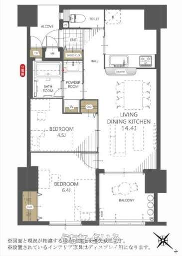 | 間取り | 2LDK ( 洋4.5 洋6.4 LDK14.4) | ||