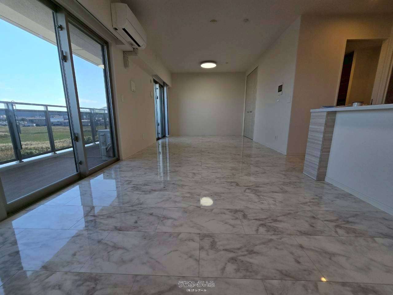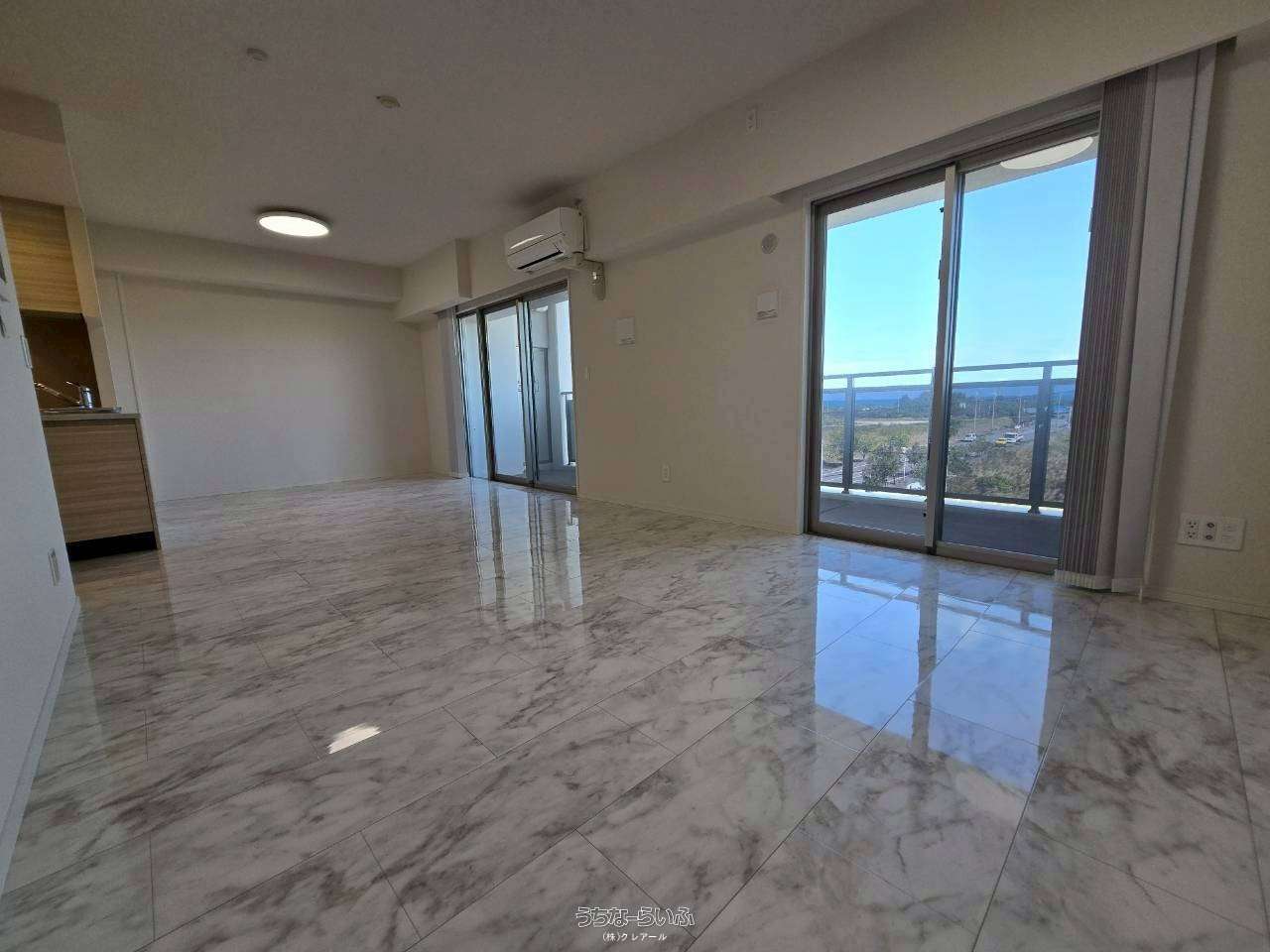 広々とした19.5帖のリビングのバルコニーからの眺め良し✨休日はゆったり♪