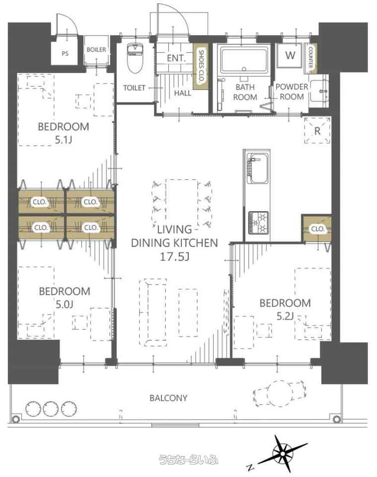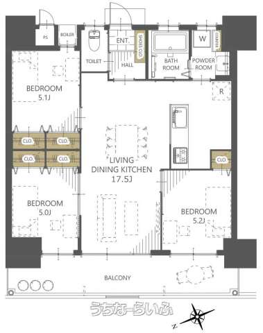 | 間取り | 3LDK ( 洋5.2 洋5.1 洋5 LDK17.5) | ||