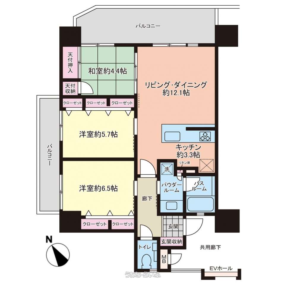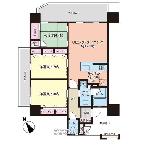 | 間取り | 3LDK ( 洋6.5 洋5.7 和4.4 LDK12.1) | ||