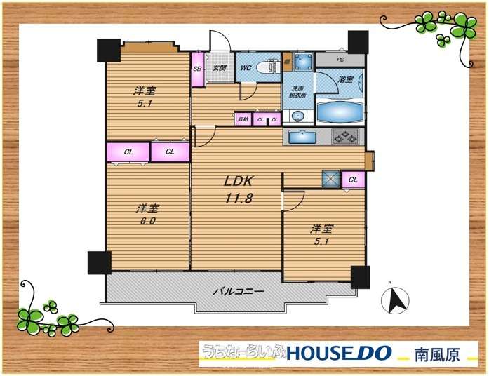| 間取り | 3LDK ( ※LDK11.8帖/洋室6.0帖/5.1帖/5.1帖) | ||