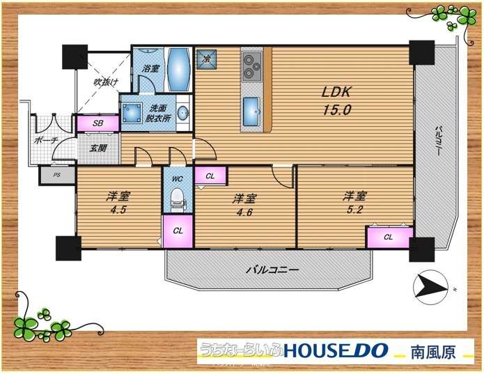 | 間取り | 3LDK ( ※LDK15.0帖/洋室5.2帖/4.6帖/4.5帖) | ||