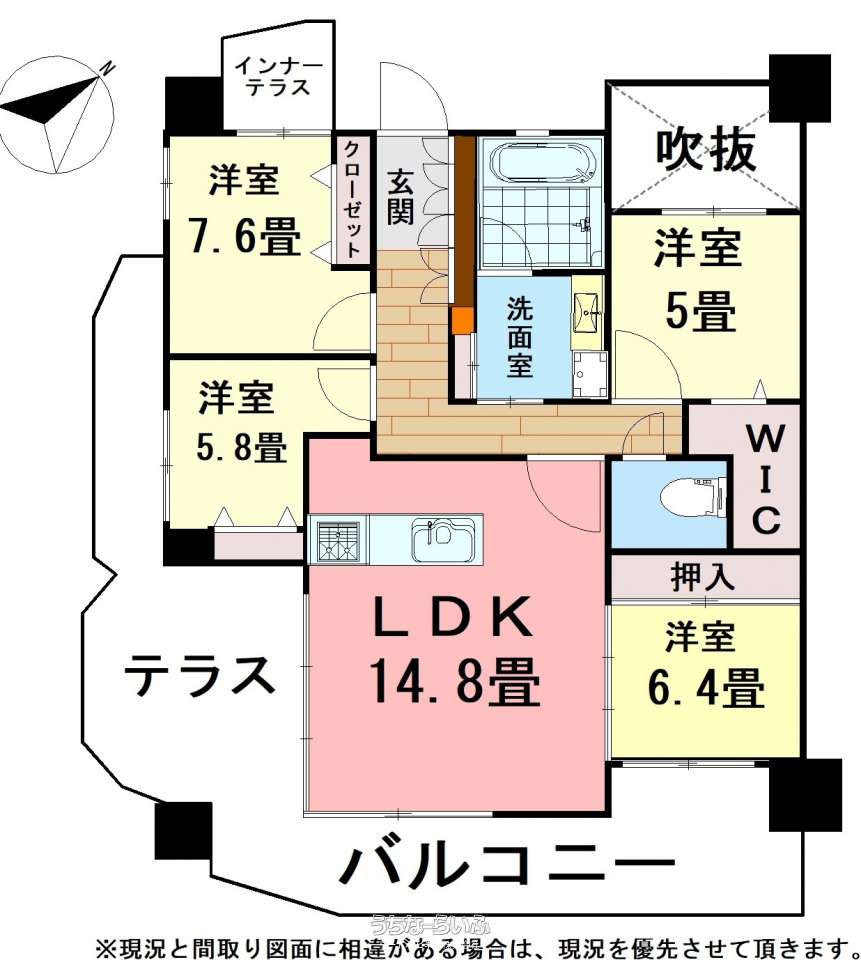 | 間取り | 4LDK ( 洋7.6 洋5 洋5.8 洋6.4 LDK14.8) | ||