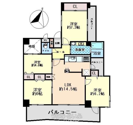 | 間取り | 4LDK ( 洋7.2 洋6.2 洋6 洋4.8 LDK14.5) | ||