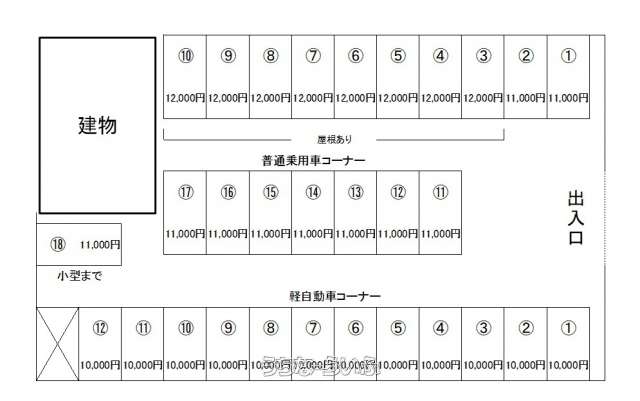 | 賃料(月) | 1万円 | 空き台数 | 1台 |