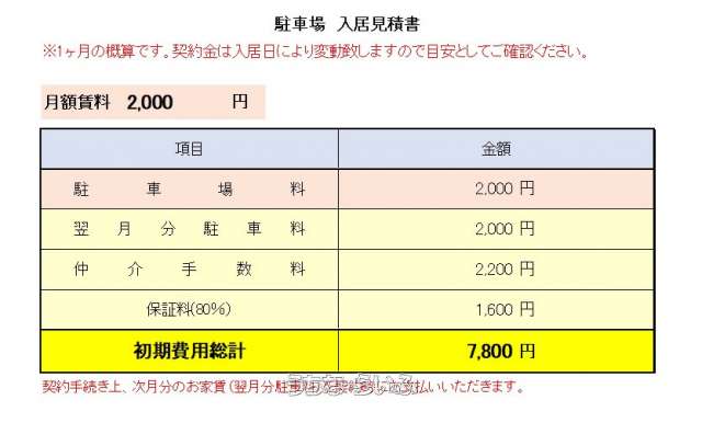 | 賃料(月) | 2,000円 | 空き台数 | 1台 |