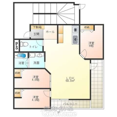 | 間取り | 3LDK ( 洋6 洋4.6 洋4.9 LDK17.5) | ペット | - |