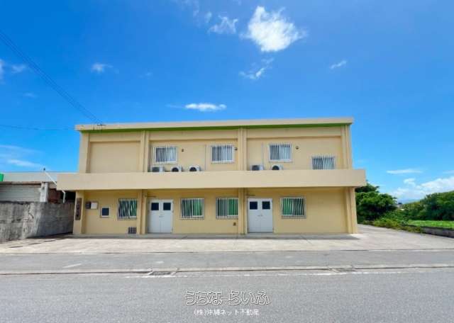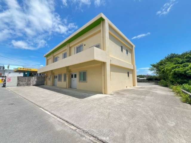 伊江港から約400メートルの県道に面したアクセスの良い場所にあります。1階の店舗・事務所スペースは食堂・レストラン・居酒屋等としてもお勧め。