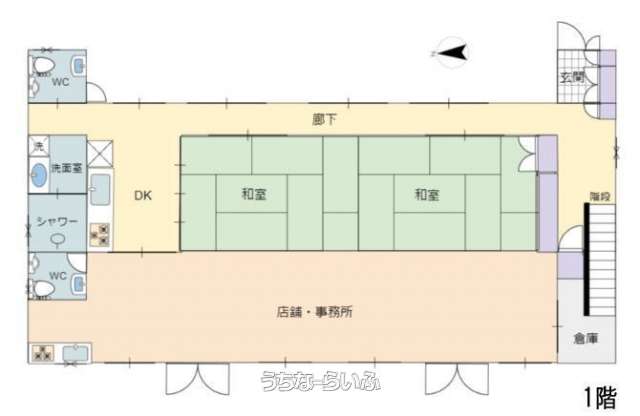 | 間取り | 8DK ( ※1階:店舗・事務所、和室×2、キッチン、シャワー、トイレ、2階:洋室×6、洗面スペース、シャワー) | ペット | 可 |