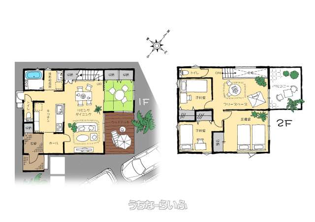 | 間取り | 4SLDK ( 洋8.1 洋5.2 洋4.5 和4.5 SLDK18.5 ※S:フリースペース6帖・・・他:トイレ2箇所/階段下収納/2階バルコニー/ウッドデッキ) | ペット | - |