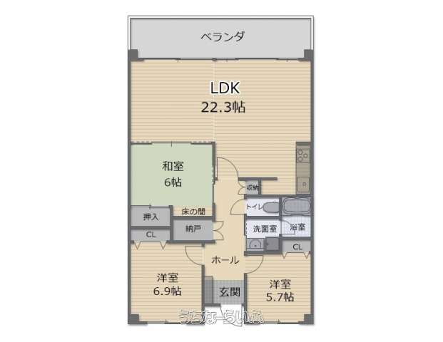 | 間取り | 3LDK ( 洋6.9 洋5.7 和6 LDK22.3) | ペット | 可 |