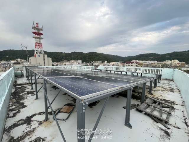 名護市大東に住居兼アパートです!太陽光収入月50,000円!年間家賃収入2,220,000円 2階部分に売主様が居住中なので退去後は賃貸もしくは住居として利用可能です♪お気軽にお問い合わせください。表面利回り6.2%(太陽光収入含)