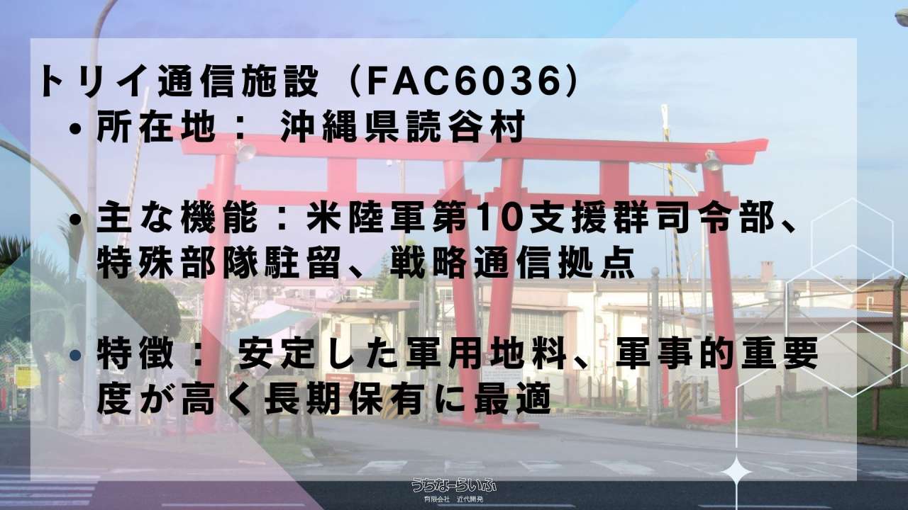 | 投資収益 | 収益物件 、 軍用地 |