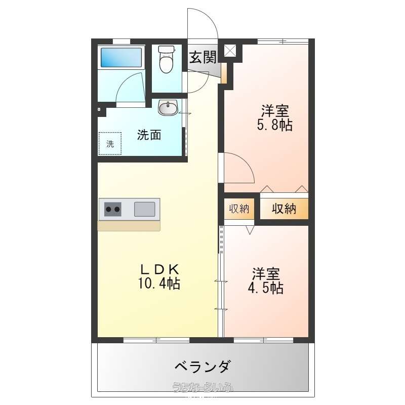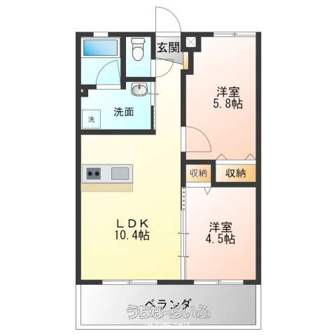 | 間取り | 2LDK ( 洋4.5 洋5.8 LDK10.4) | ペット | 不可 |