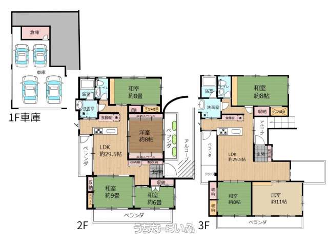 | 間取り | 8LDK ( 洋29.5 洋8 洋11 和8 和8 和8 和9 和6 LDK29.5) | ペット | 可 |