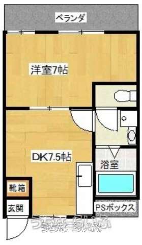 | 間取り | 1DK ( 洋7 DK7.5 ※1DK×5室×3階建=15室 バス・トイレ別・収納スペースあり) | ペット | 不可 |
