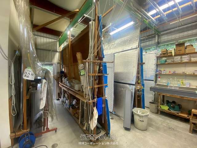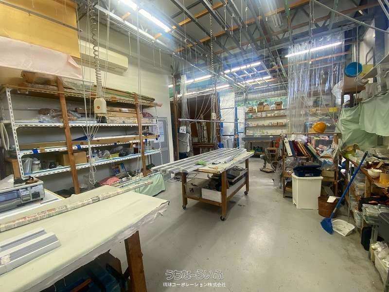 中城村屋宜の事務所兼作業所・倉庫向け1棟物件。駐車場は10台以上駐車可