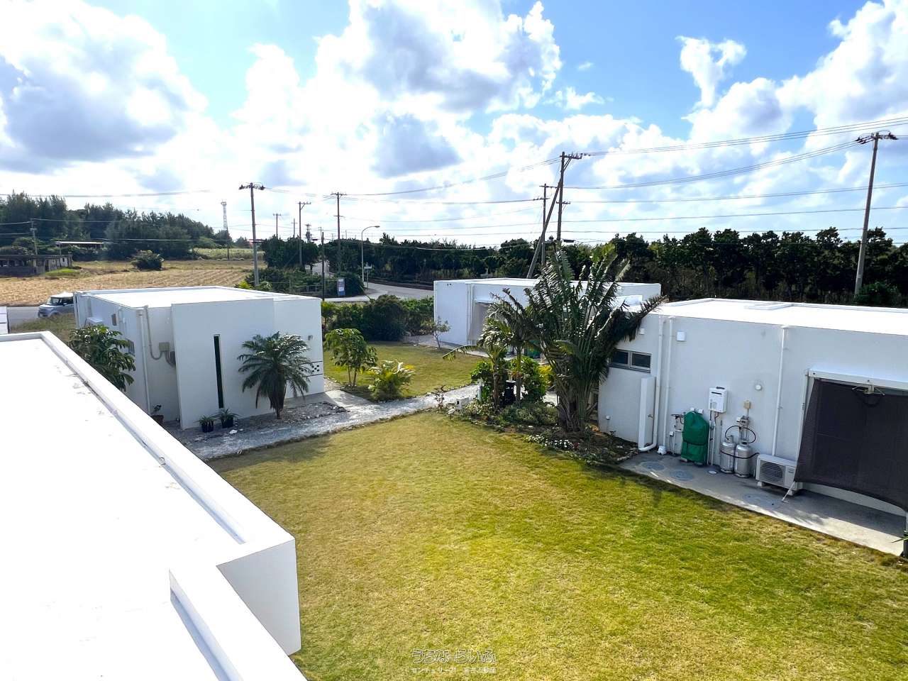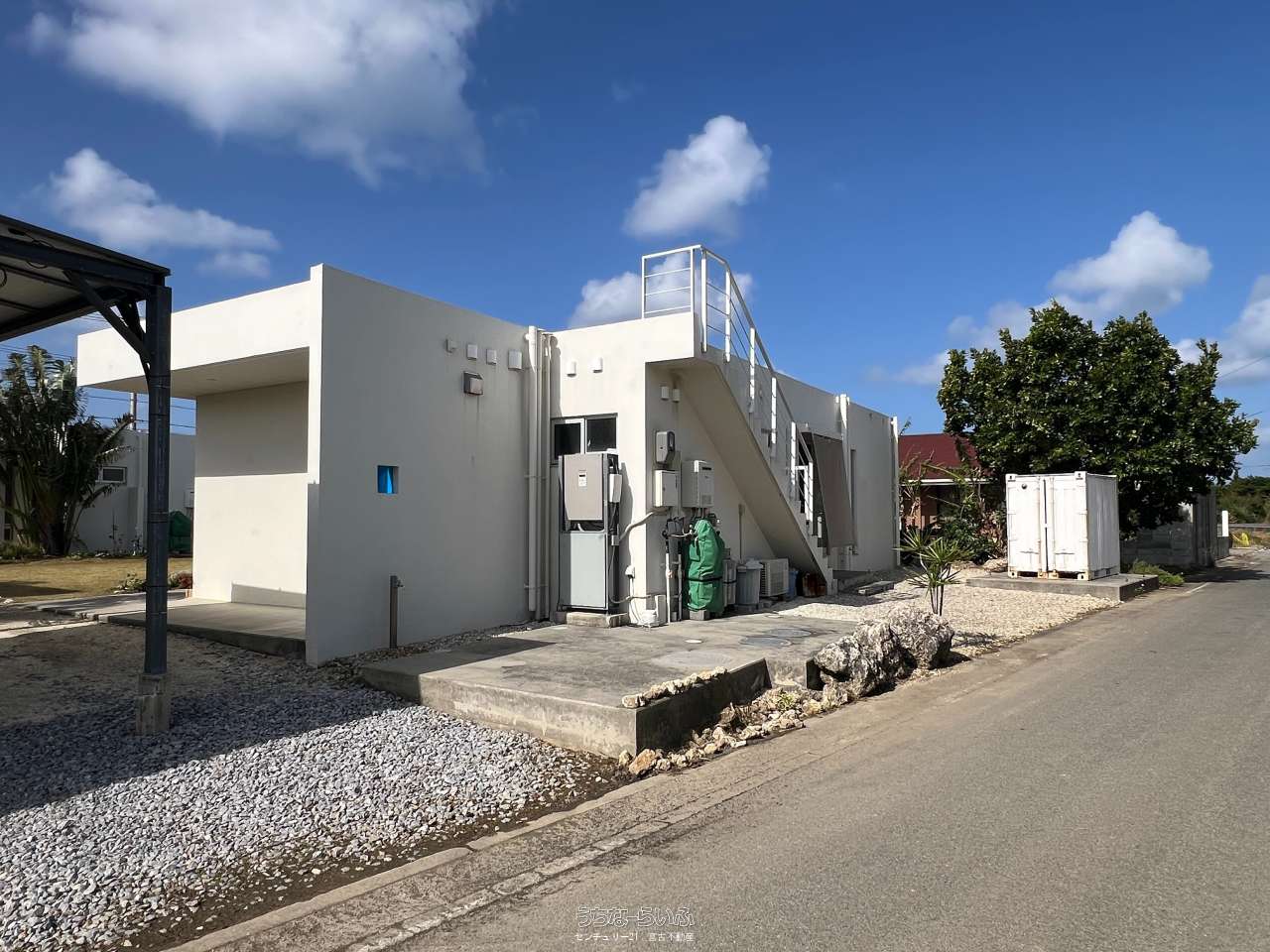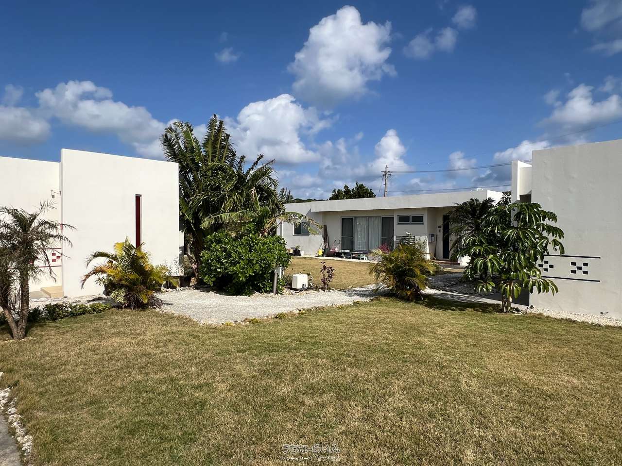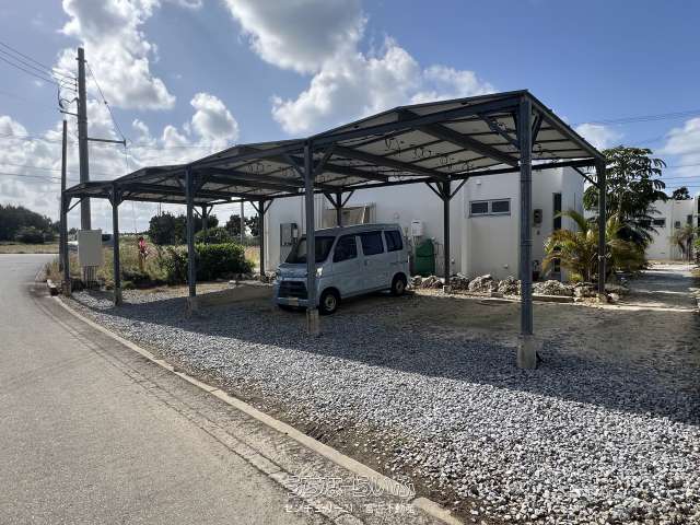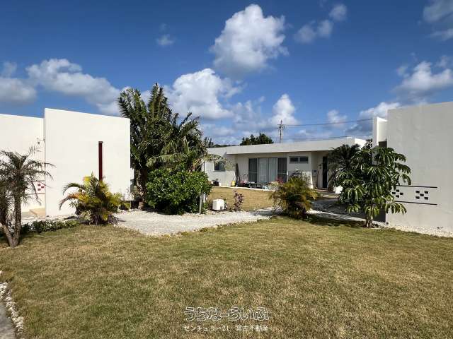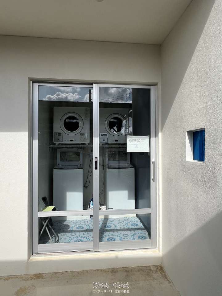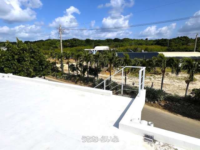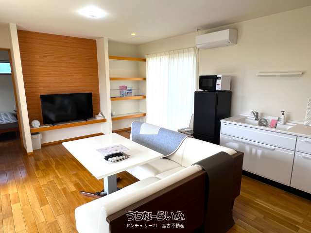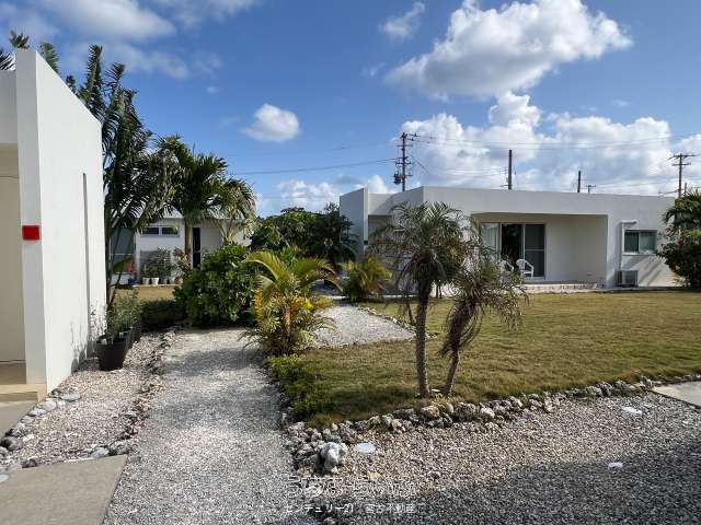 池間線に面し、狩俣小学校と中学校の間に位置。地上からも海は見えますが、管理棟屋上からは更に景色が良好で伊良部島も望めます。太陽光パネル・蓄電池あり。軟水器、浄化槽は4棟それぞれに設置済み。家具家電など宿泊業の設備込み。コインランドリー/洗濯機・乾燥機各2台。倉庫ミニコンテナ。(北東側隣地にBBQ施設などがあり、宿泊者の有料利用も可能)※居住中の為、内覧は事前にご予約が必要です。