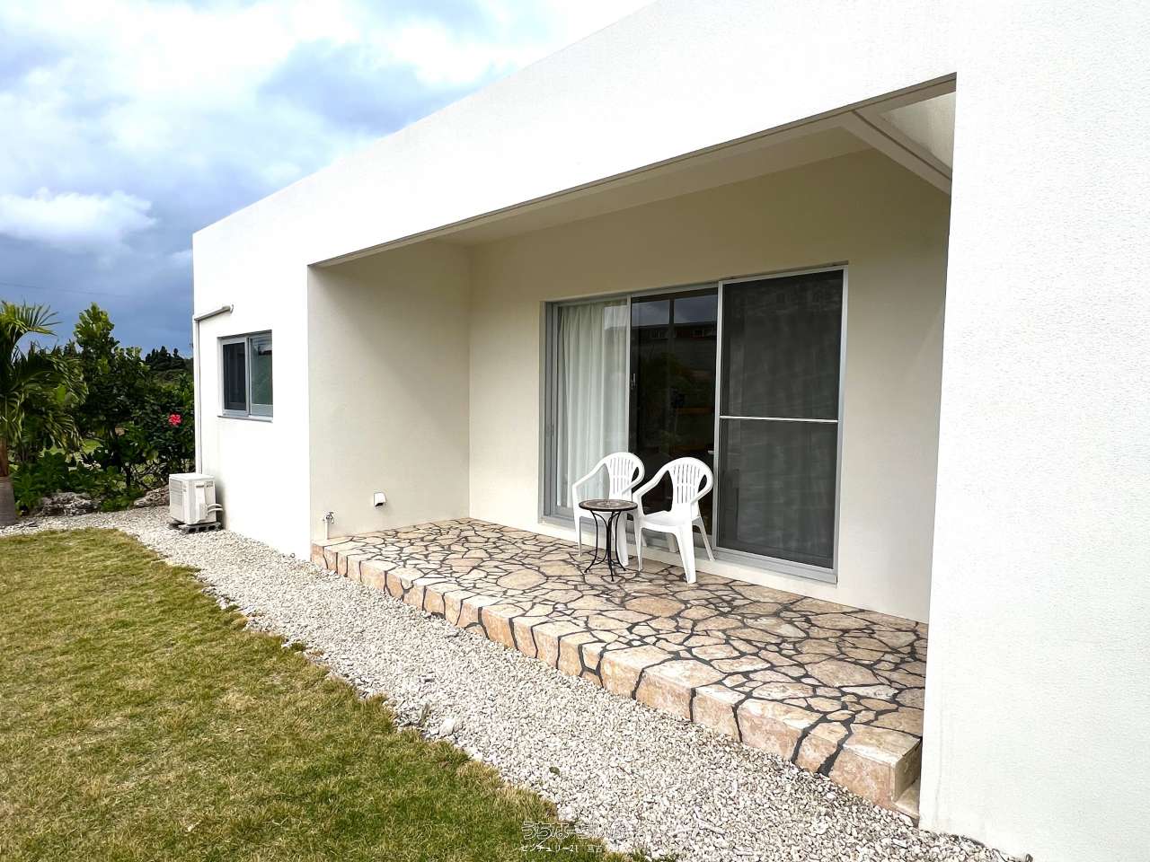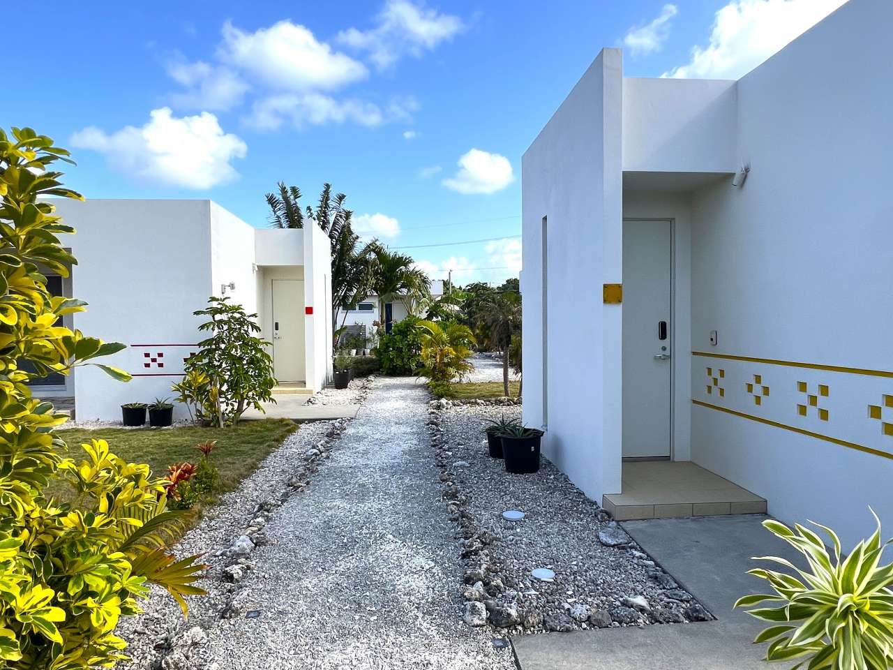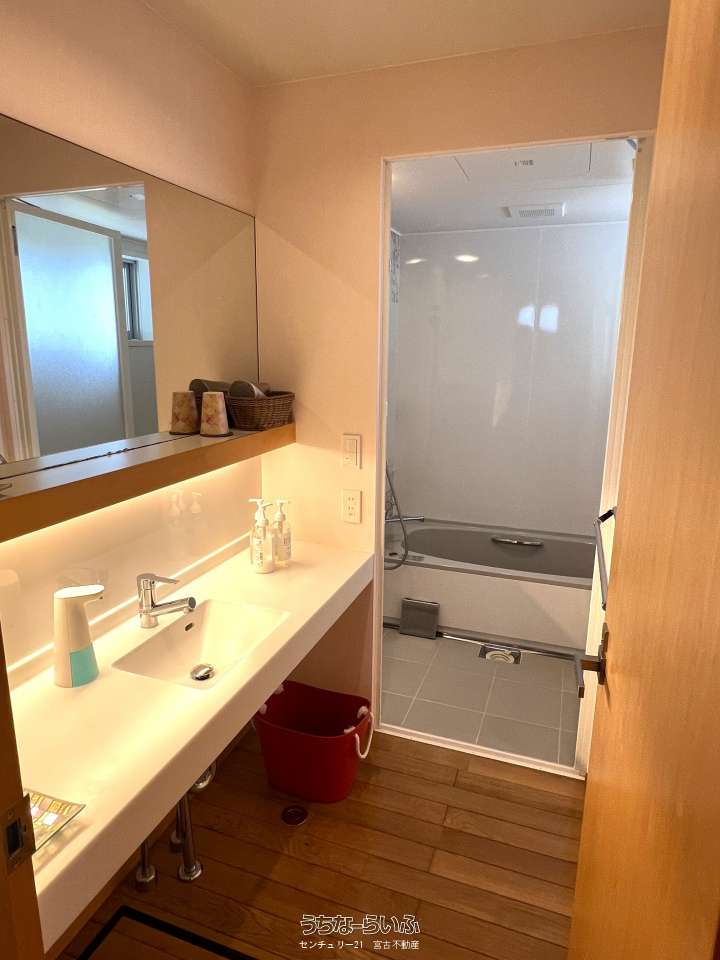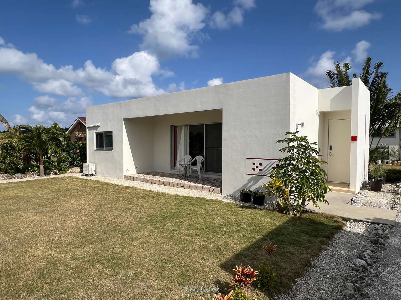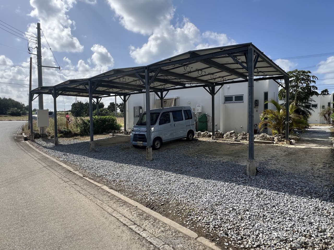 池間線に面し、狩俣小学校と中学校の間に位置。地上からも海は見えますが、管理棟屋上からは更に景色が良好で伊良部島も望めます。太陽光パネル・蓄電池あり。軟水器、浄化槽は4棟それぞれに設置済み。家具家電など宿泊業の設備込み。コインランドリー/洗濯機・乾燥機各2台。倉庫ミニコンテナ。(北東側隣地にBBQ施設などがあり、宿泊者の有料利用も可能)※居住中の為、内覧は事前にご予約が必要です。