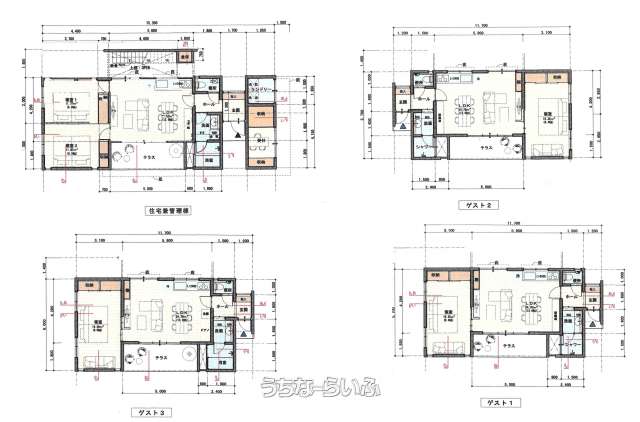 | 備考 | ※現況渡し ※景観条例:農地集落景観ゾーン b.集落地景観(高さ13m) 拠点景観ゾーン a.歴史・文化拠点 ※現所有者に旅館業委託の相談可能(その場合、1棟は継続居住・賃料収入あり) ※管理棟とゲストハウス3はバスタブあり。(ゲストハウス3は地下換気システムあり) |