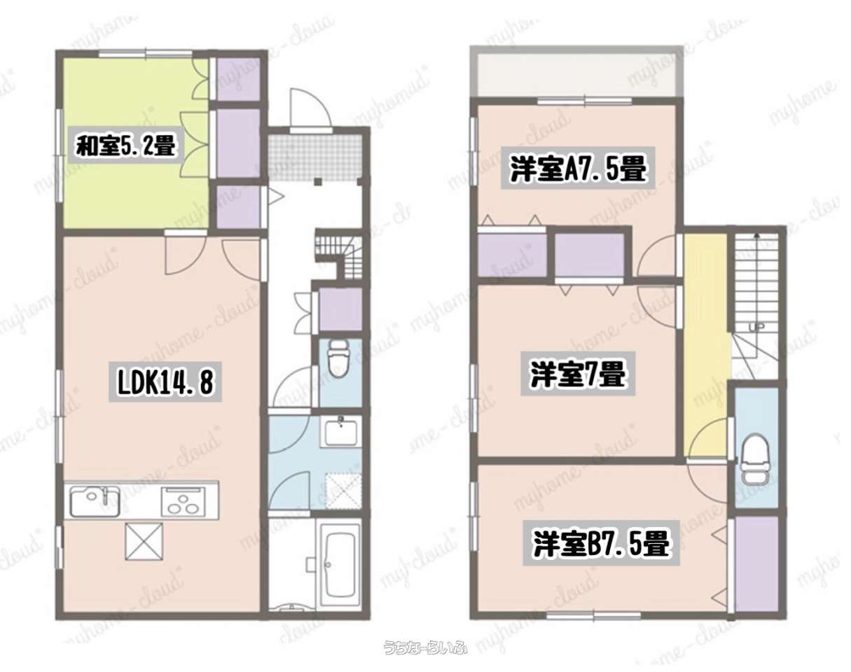 | 間取り | 4LDK ( 洋7.5 洋7.5 洋7 洋5.2 LDK14.8) | ペット | 可 |