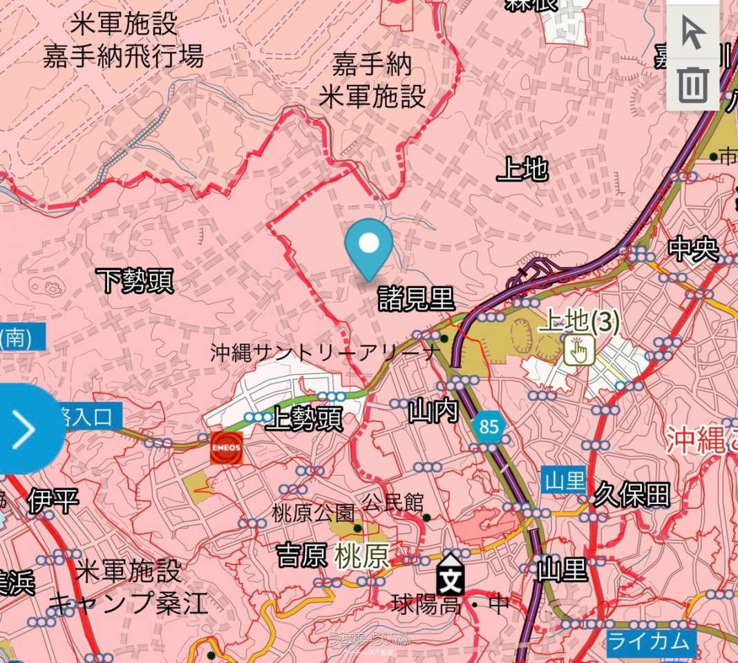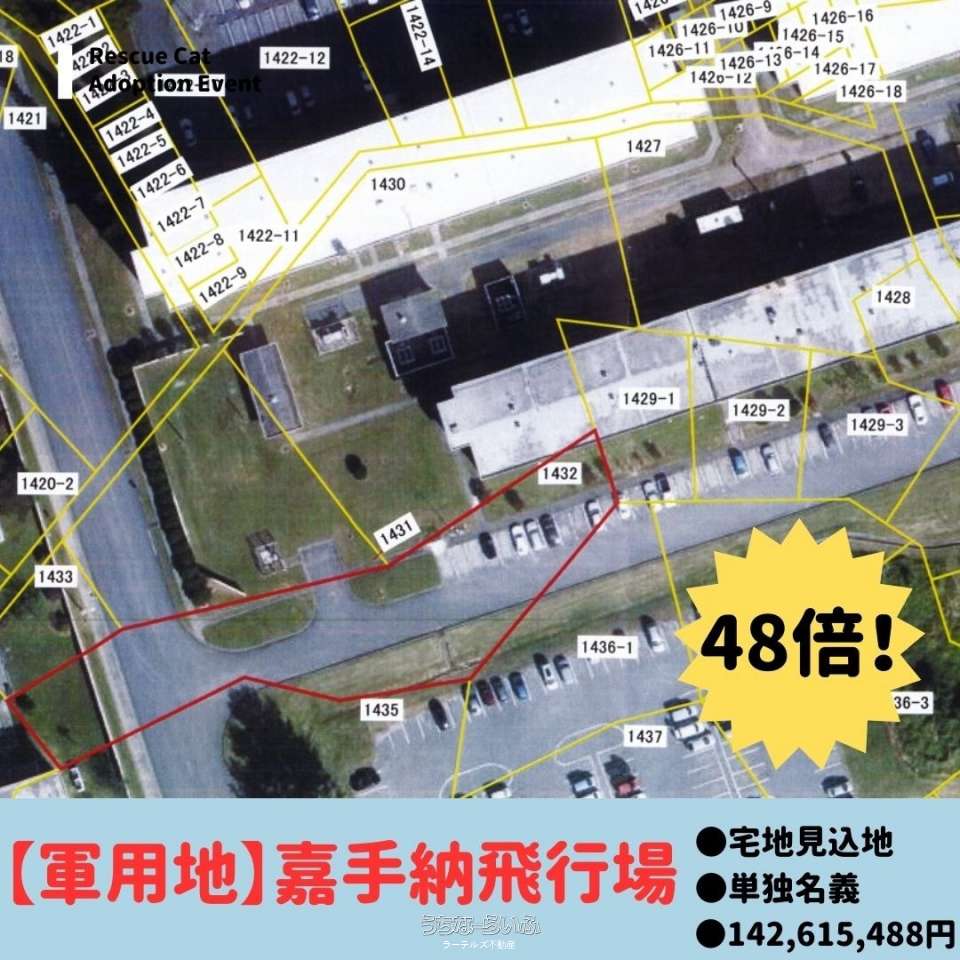 【軍用地:嘉手納飛行場✨】●倍率48倍!!(年間地料2,971,156円/年) ●宅地見込地 ●1区画(全2区画あり) ●単独名義