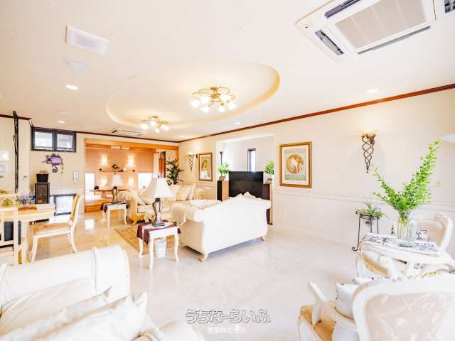 大型犬飼育可能なゆとりある設計、P4台、ガレージ直結の快適な動線、全室WIC付きの豊富な収納を備え、アイアン装飾や南欧デザインの意匠性により差別化された商品力を実現。