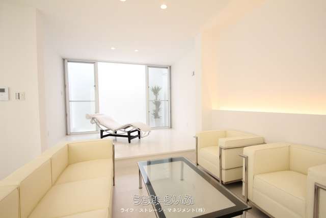コストコ南城倉庫店開業間近の「つきしろ」エリアの中心に位置するコートハウス型(中庭)の事務所兼用住宅、また店舗及び宿泊施設にも対応可。2階建てで真ん中に中庭があり明るく白を基調としたシンプルな物件です。ホームエレベーター付きなので高齢者にも優しい。