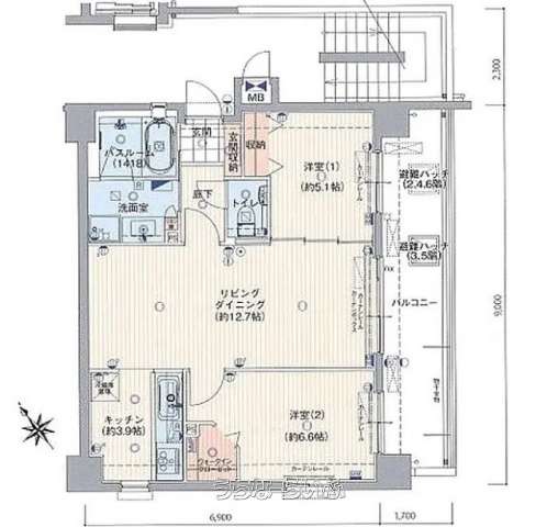 | 間取り | 2LDK ( 洋6.6 洋5.1 LDK12.7) | ペット | 可 ※規約有り |