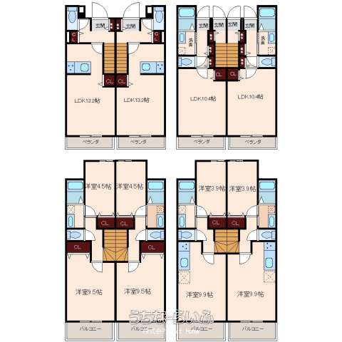 | 間取り | - ( ※1R×2室 1LDK×2室 2LDK×2室) | ペット | - |