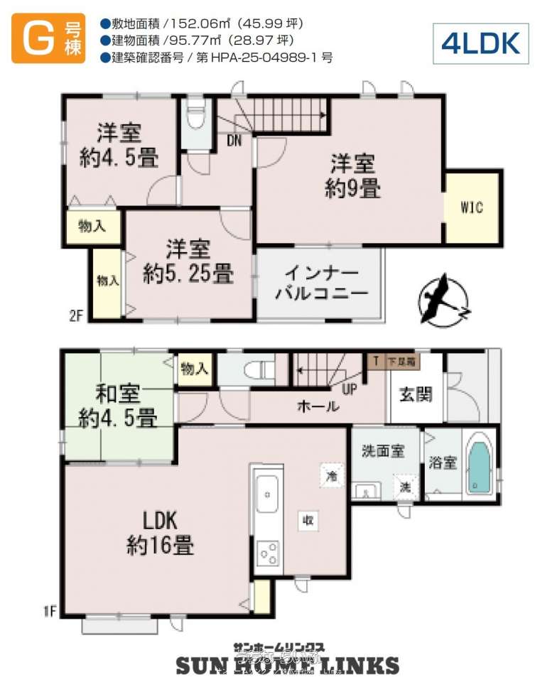 | 建物面積 | 95.77m² / 28.97坪 | 土地面積 | 152.06m² / 45.99坪 |