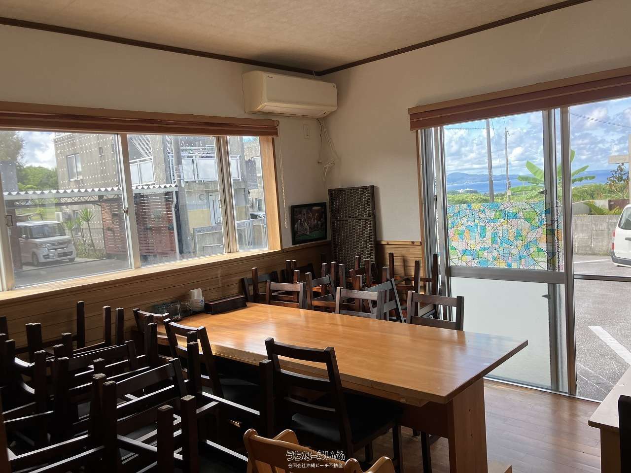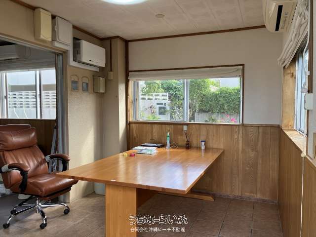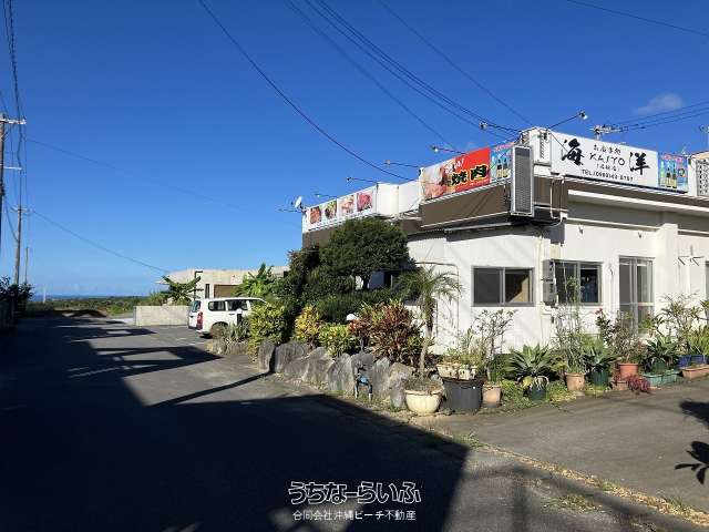【海が見えます!】広め58.60坪の一軒家です。事務所にも向いています!敷地も広く181.77坪あります。10台前後駐車可能。敷地南東側の増築箇所・植え込みを撤去すれば更に駐車可能です。ジャングリア・名桜大学に近いエリアです。