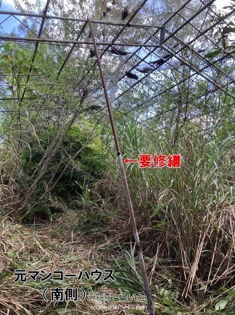 | 備考 | ◆現状有姿売買(測量なし、売主の契約不適合責任は免責) ◆農振農用地区域内のため、土地の活用方法は【農業】に限られます(居住目的や事務所・店舗等は不可)。 ◆現況は草木が繁茂しています。ご案内できるように一部は草刈り済みです。 ◆【元マンゴーハウス】南側:一部サビで朽ちていますが、概ね原形はとどめています。修繕して使えそうか現地でご確認ください。 北側:サビで朽ちて原形をとどめていない箇所が多数あります。除去が必要と考えます。 ◆管理小屋は雨漏りがあります。活用するためには修繕が必要です。その他の説明がございますので、電話問い合わせの際にお話しさせていただきます。見学のご判断は説明後でお願いします。 ◆敷地内で高低差あり。画像1枚目の地形図を参考にしてください。 ◆見学時は長靴をご用意ください。足元が汚れます。 |
