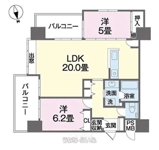 | 間取り | 2LDK ( 洋6.2 洋5 LDK20) | ペット | 可 |