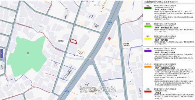 | 用途地域 | 第一種住居 | 接道方向 / 道路幅員 | 北、 北東、 東、 南東、 南、 南西、 西4m、 北西 |
