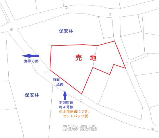 | 立地 | 高台 、 南道路 、 海まで徒歩10分以内 |