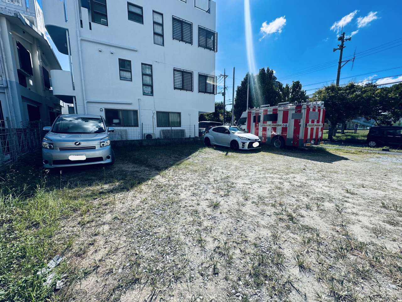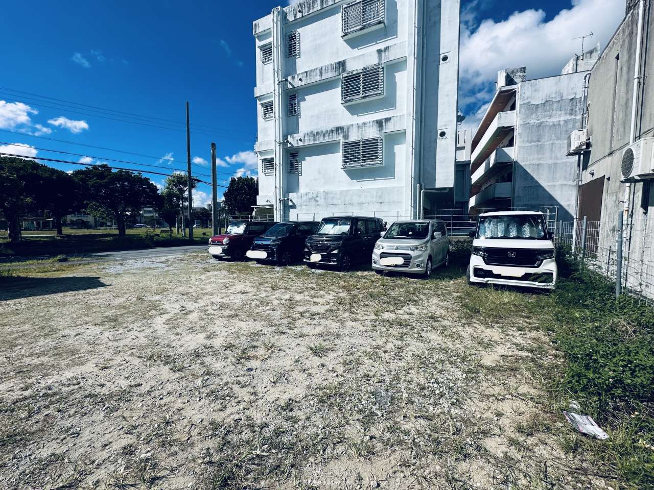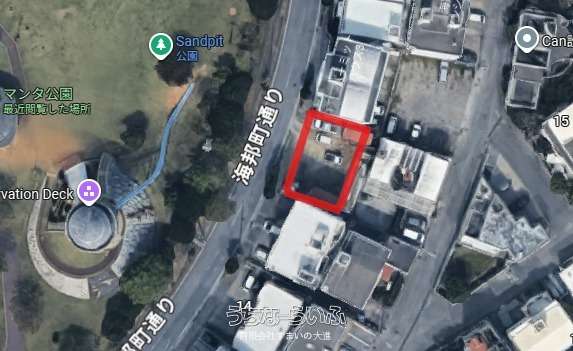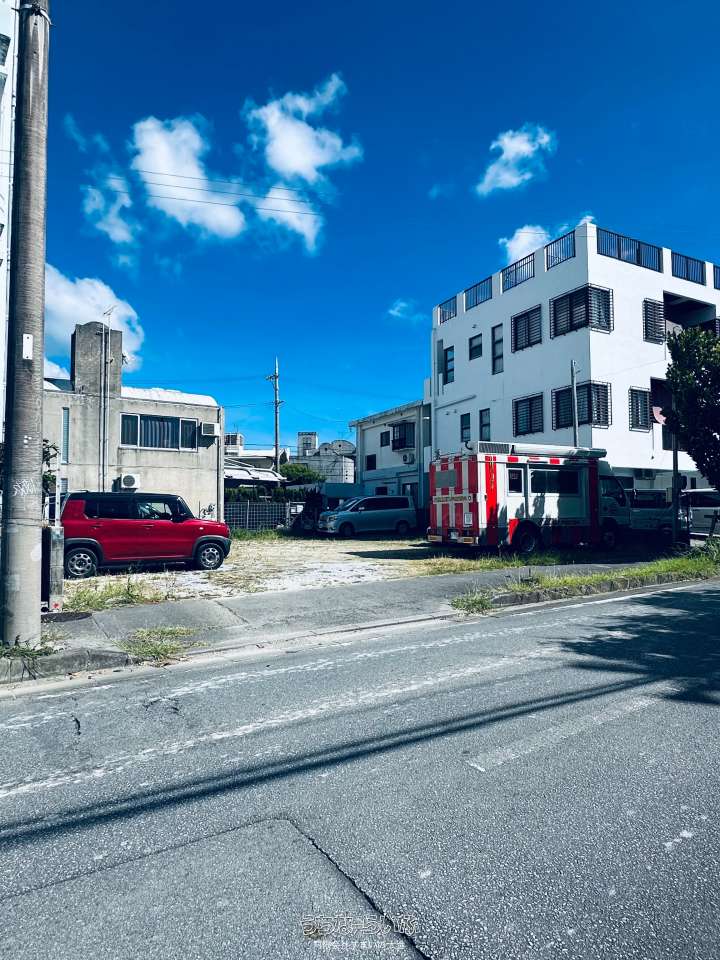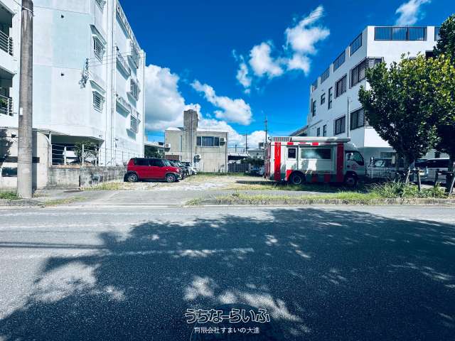 【更地引渡し】沖縄市海邦2丁目の売地(247.35平米/74.8坪)。住宅やアパート建築にも適した立地です。目の前が公園・スーパーや飲食店も徒歩圏内。