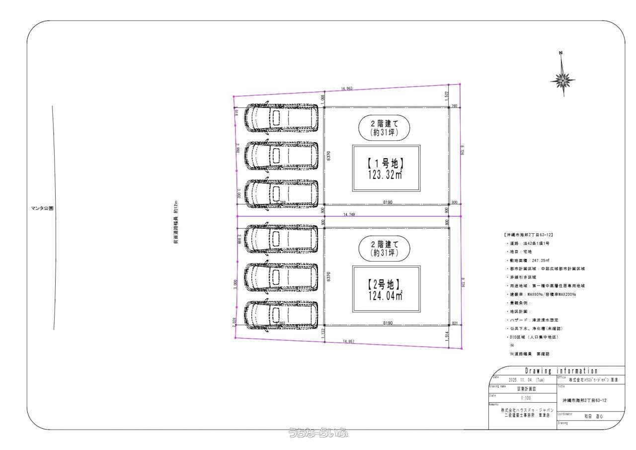 | 用途地域 | 第一種中高層 | 接道方向 / 道路幅員 | 西8m |