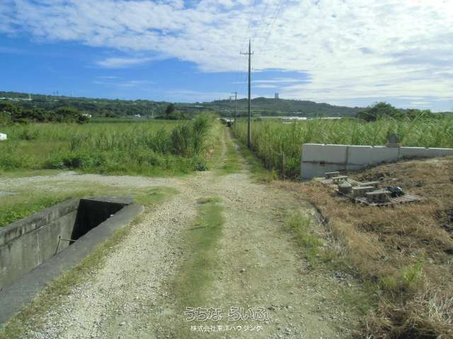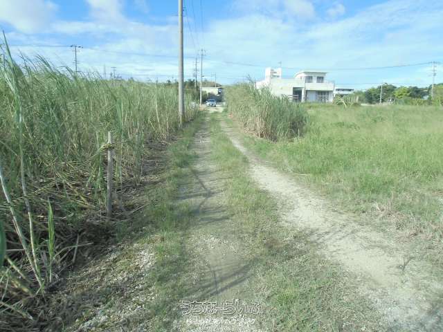 農振農用地、現在さとうきび畑として使用中です。※現況幅員は約4mで砂利道です。