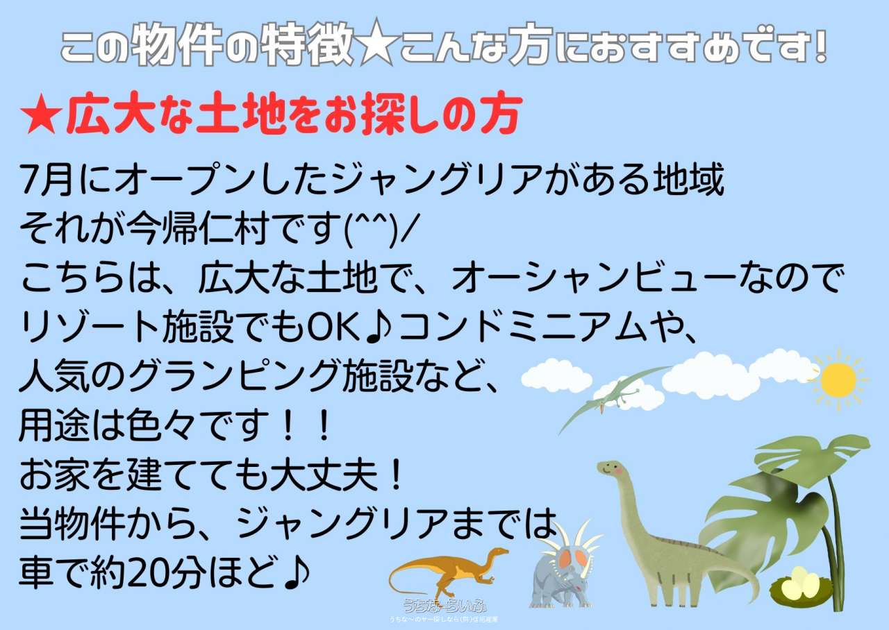 自然に囲まれた開放的な環境で、非日常を日常に変える暮らしを実現できます🌟「ジャングリア」まで車で約20分🚗💨レジャーや観光も気軽に楽しめる好立地で、リゾート気分を存分に味わえる環境が整っています。