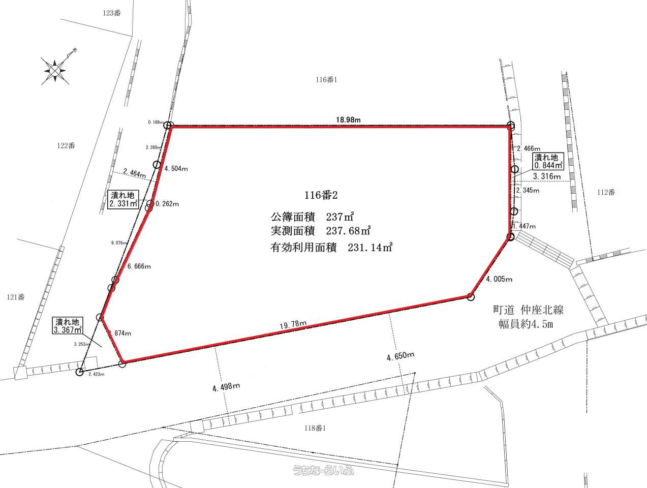 | 用途地域 | 未指定 | 接道方向 / 道路幅員 | 北東4.5m |
