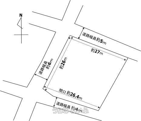 | 用途地域 | 無指定 | 接道方向 / 道路幅員 | 北5m、 南4m、 西6m |
